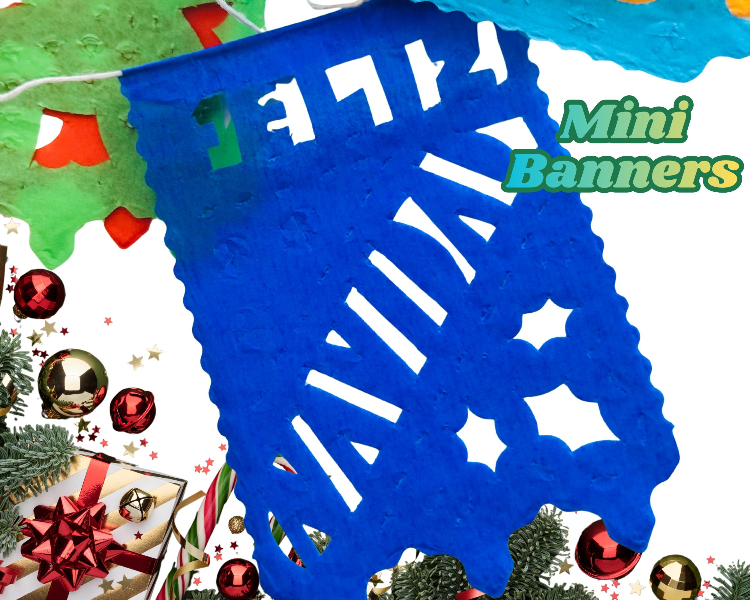 Get in the Christmas spirit with these mini Christmas papel picado banners! Featuring traditional Christmas designs (like Christmas trees, reindeer, and more), these papel picado banners are the perfect way to add a festive touch to your Christmas fiesta. Our fiesta decorations are handcrafted by skilled artisans in Mexico City, Mexico.