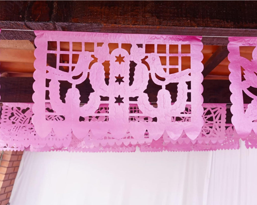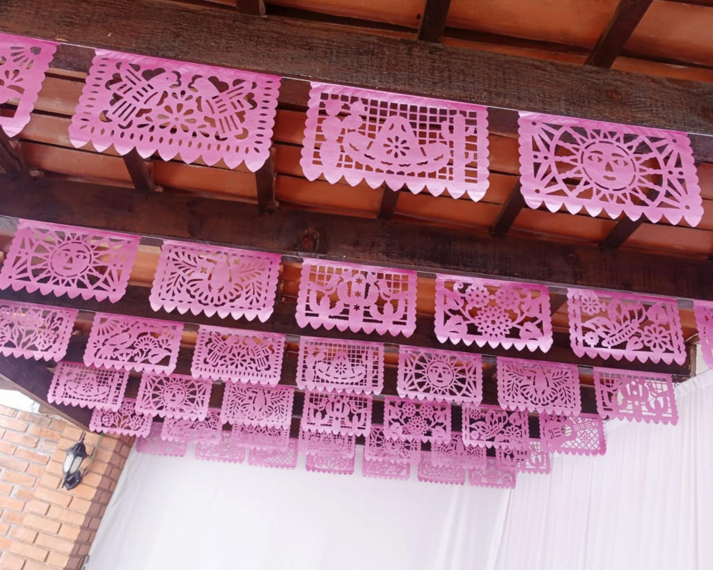 Metallic Pink Papel Picado, Picado Banner, Mexican Fiesta decor, (4 pk/48 ft)
