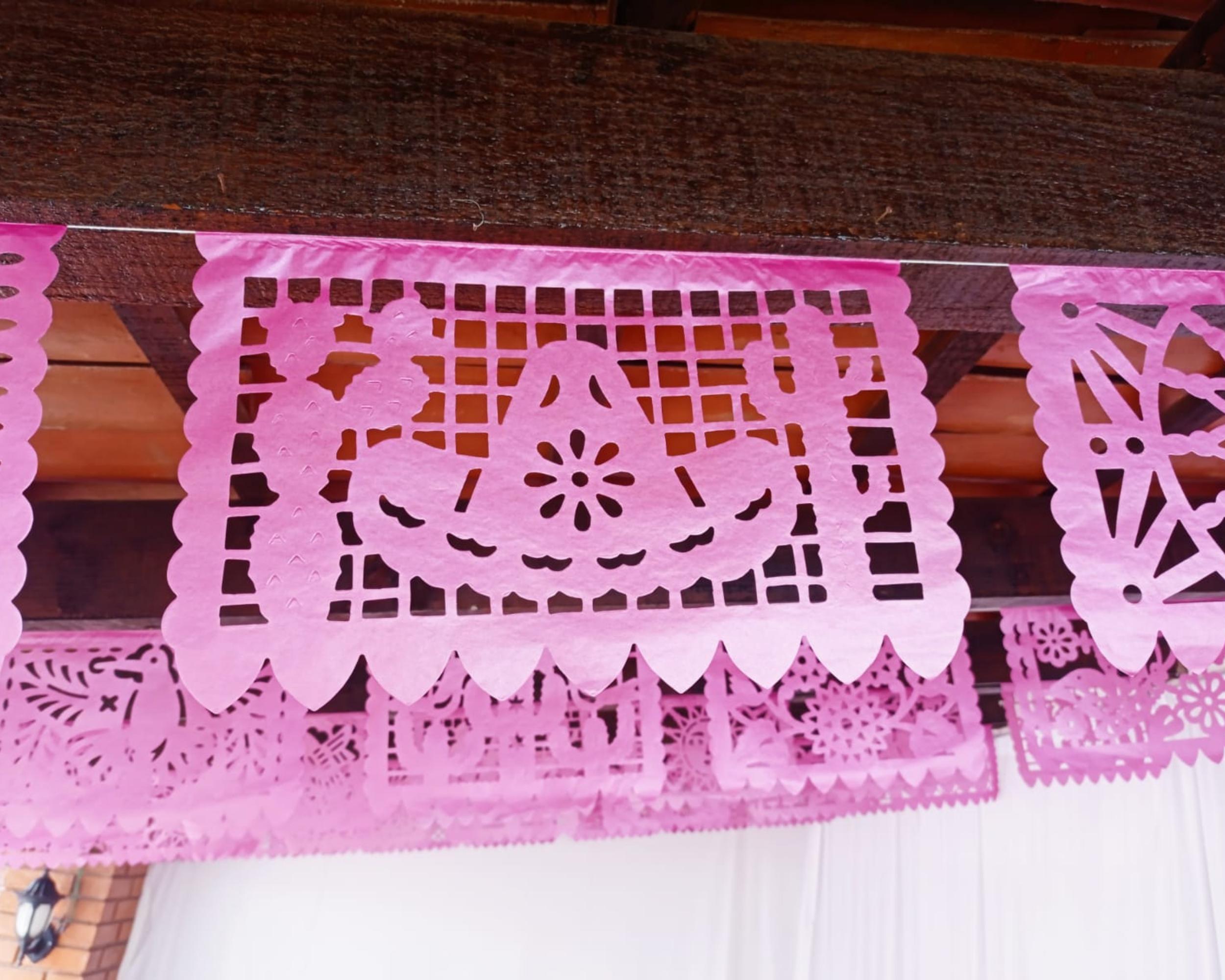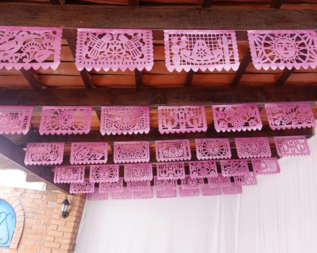 Add extra decor to your next Fiesta, birthday party or Mexican themed wedding with these beautiful Metallic Pink Papel Picado Paper banners!