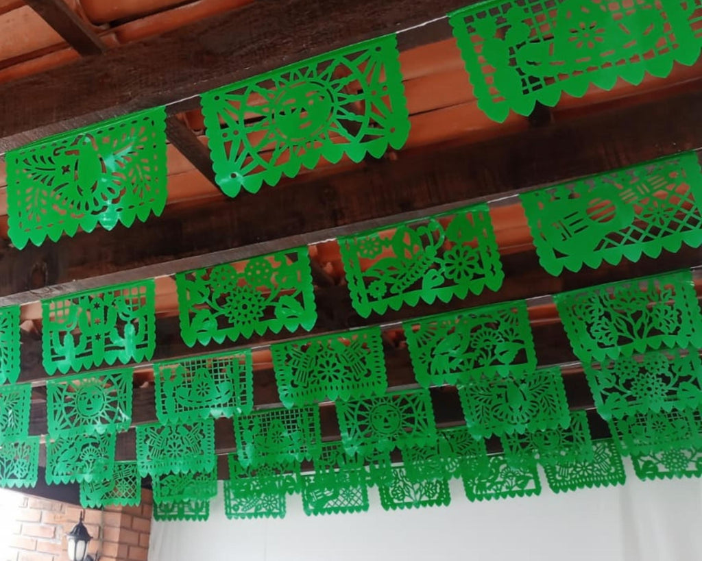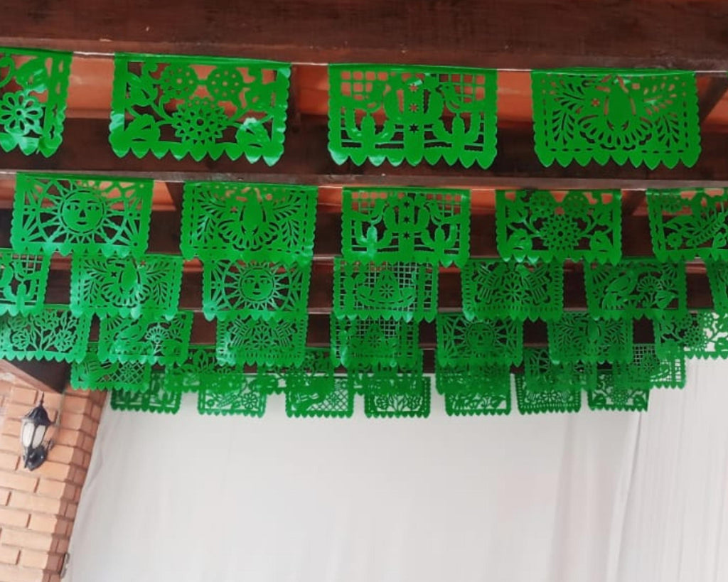 Get ready to fiesta with our Green Plastic Picado Banners! This 3 pack of banners is perfect for adding a festive touch to any party or event. Made from durable plastic, these garlands are a must-have for any Mexican-themed celebration.