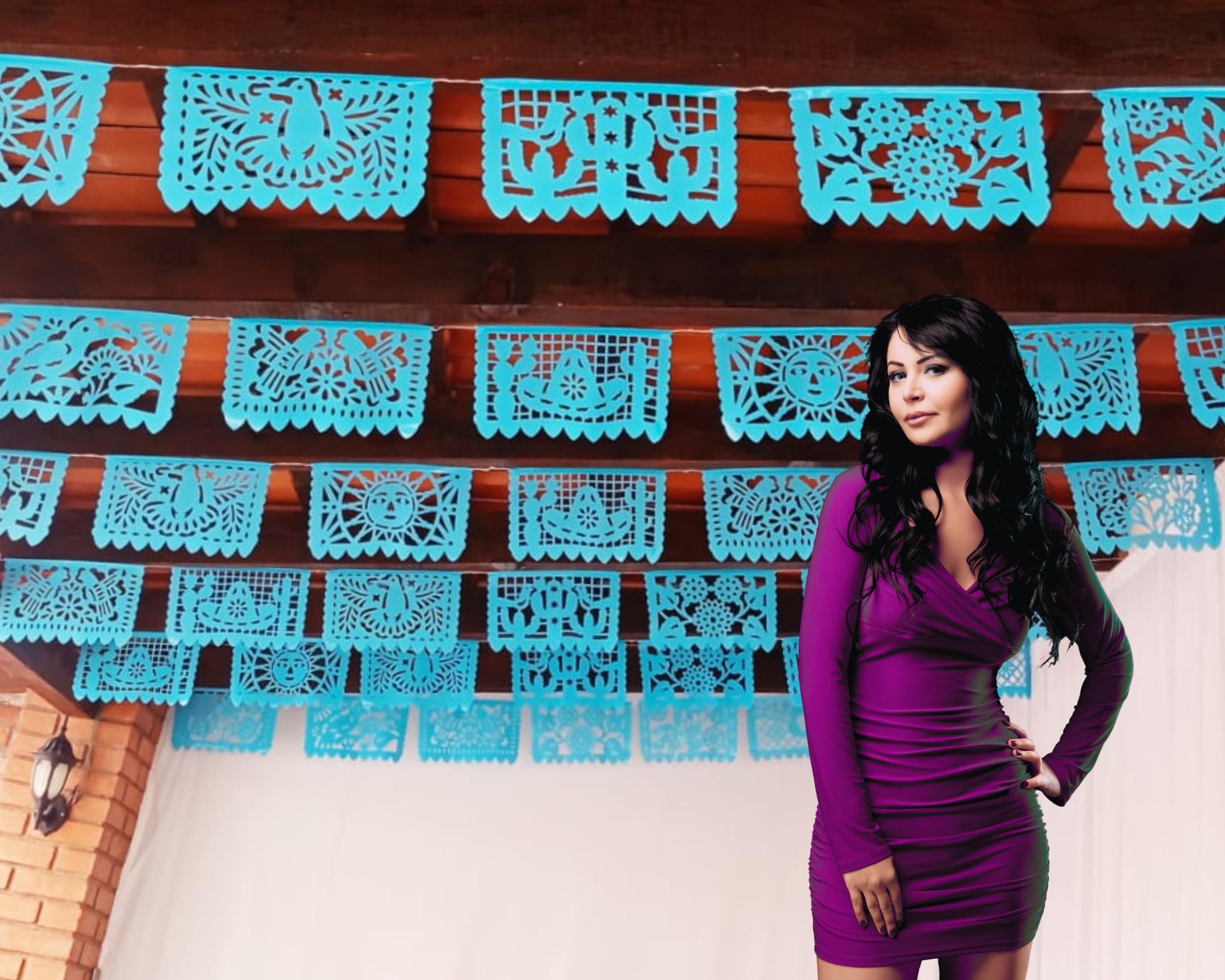Plastic Picado Banners, 3 Pack , Aqua Blue, Fiesta decoration, Mexican Party decor, Bohemian Plastic Garland, Floral, Wedding Garland.