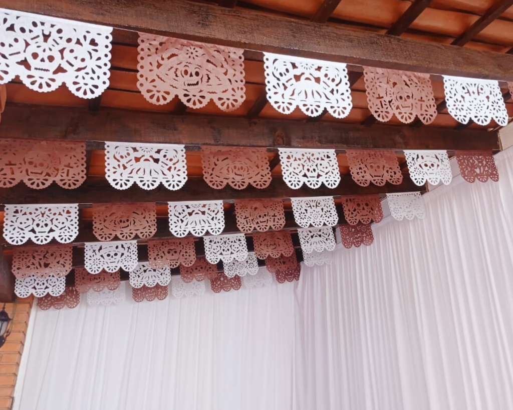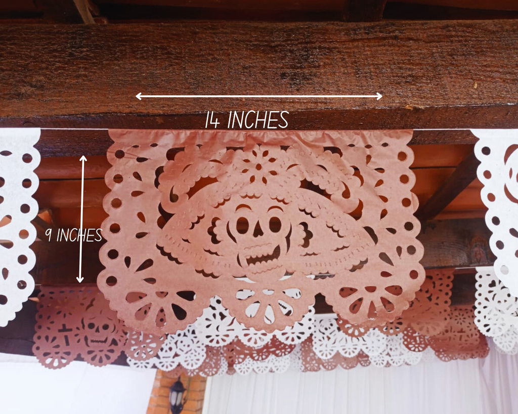 Day of the Dead Brown and White Papel Picado Banners (Tissue Paper, 60ft Total)