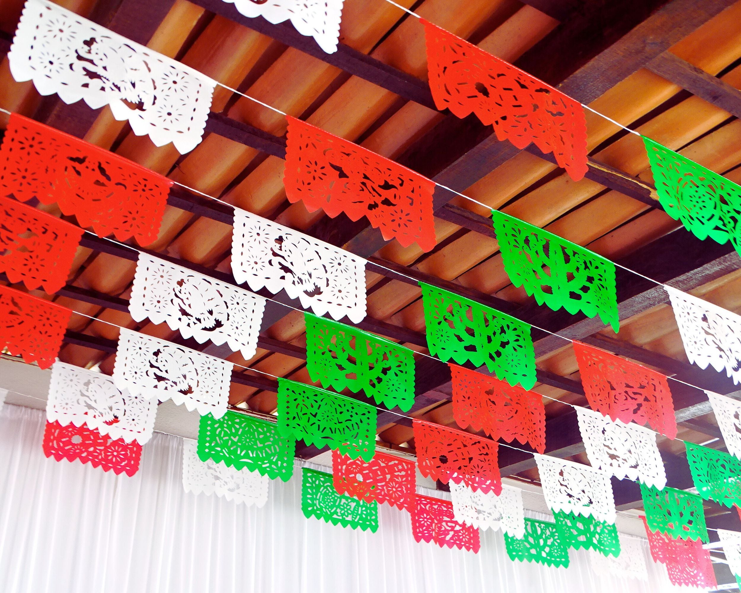 Celebrate with flair! This 3-pack of vibrant, plastic papel picado banners in the colors of Mexico (red, white, and green) will add festive charm to your Mexican Independence Day fiesta. Hang them indoors or outdoors for a festive touch that will add a lot of fun to your party. Viva Mexico!