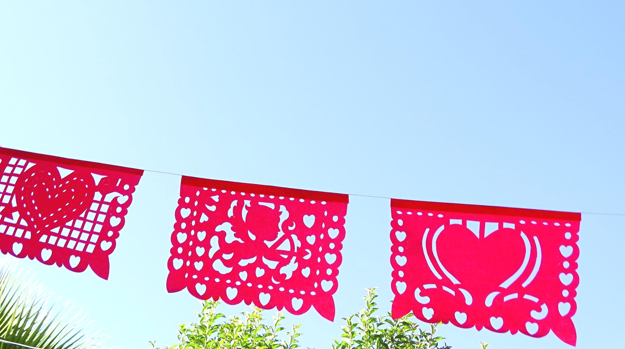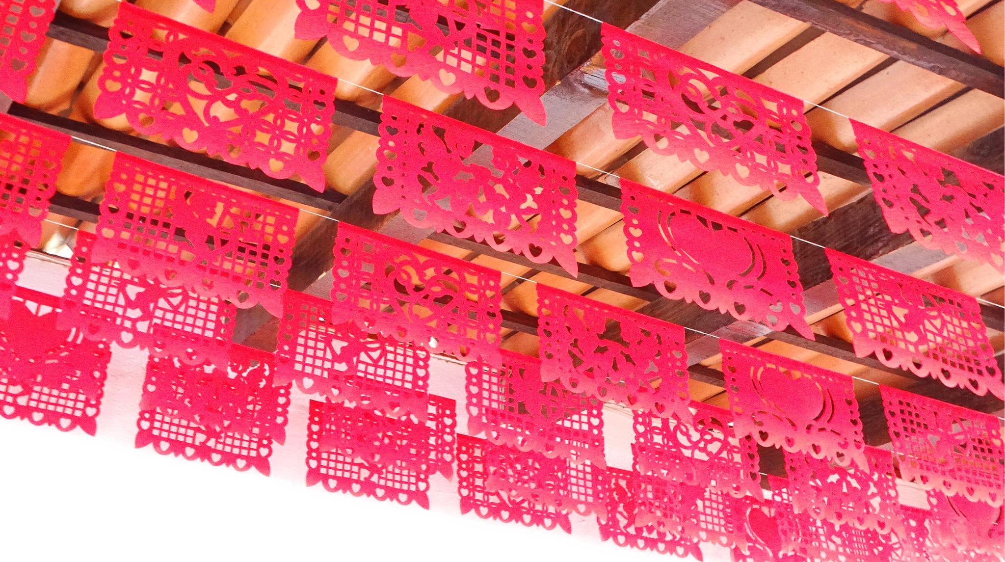 Add red to your Valentine's Day fiesta with our authentic papel picado banners! Our papel picado features intricately cut, Valentine's Day designs, including hearts, cupid, and flowers.