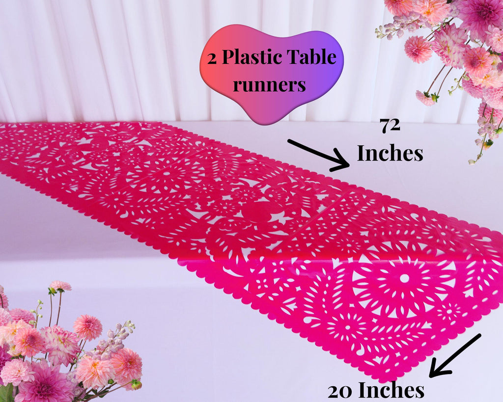 2 Pack, Hot Pink Plastic Table Runners, Mexican Fiesta Decor, 20x72 Inches