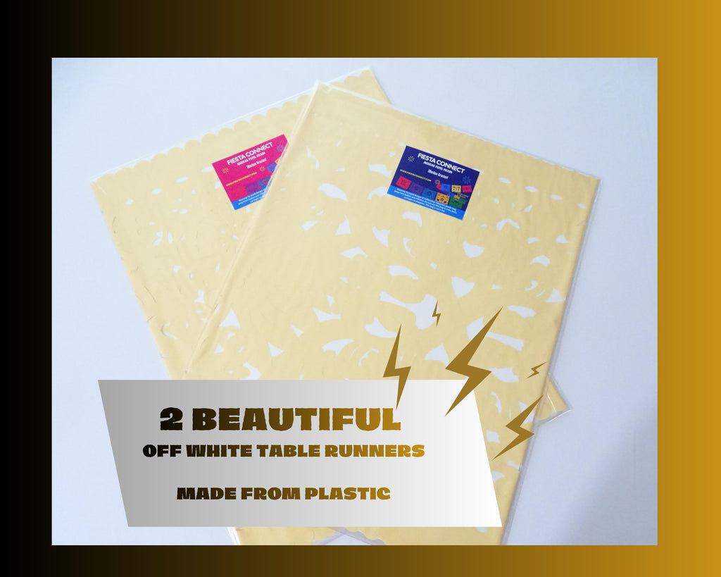 2 Pack, Off White Plastic Table Runners, Mexican Fiesta Decor, 20x72 Inches