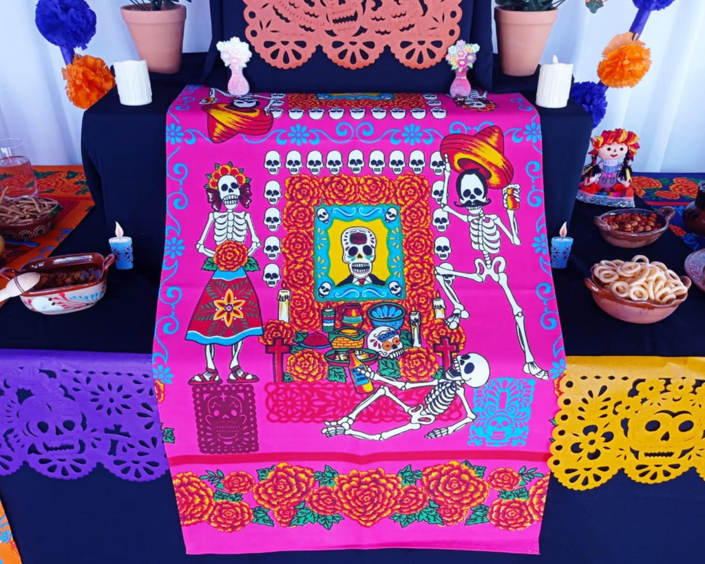 Day of the Dead Ofrenda Table Runner (Pink)