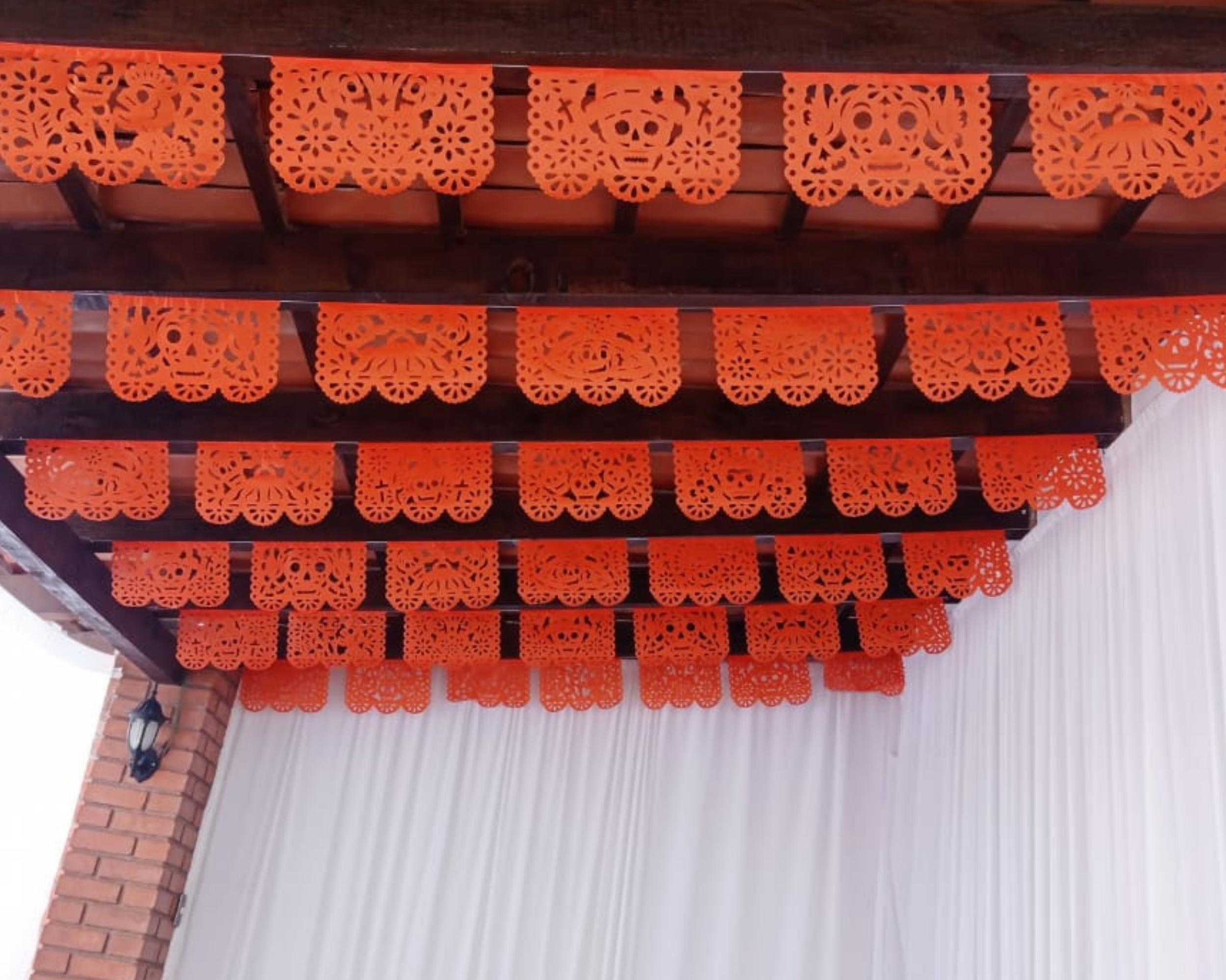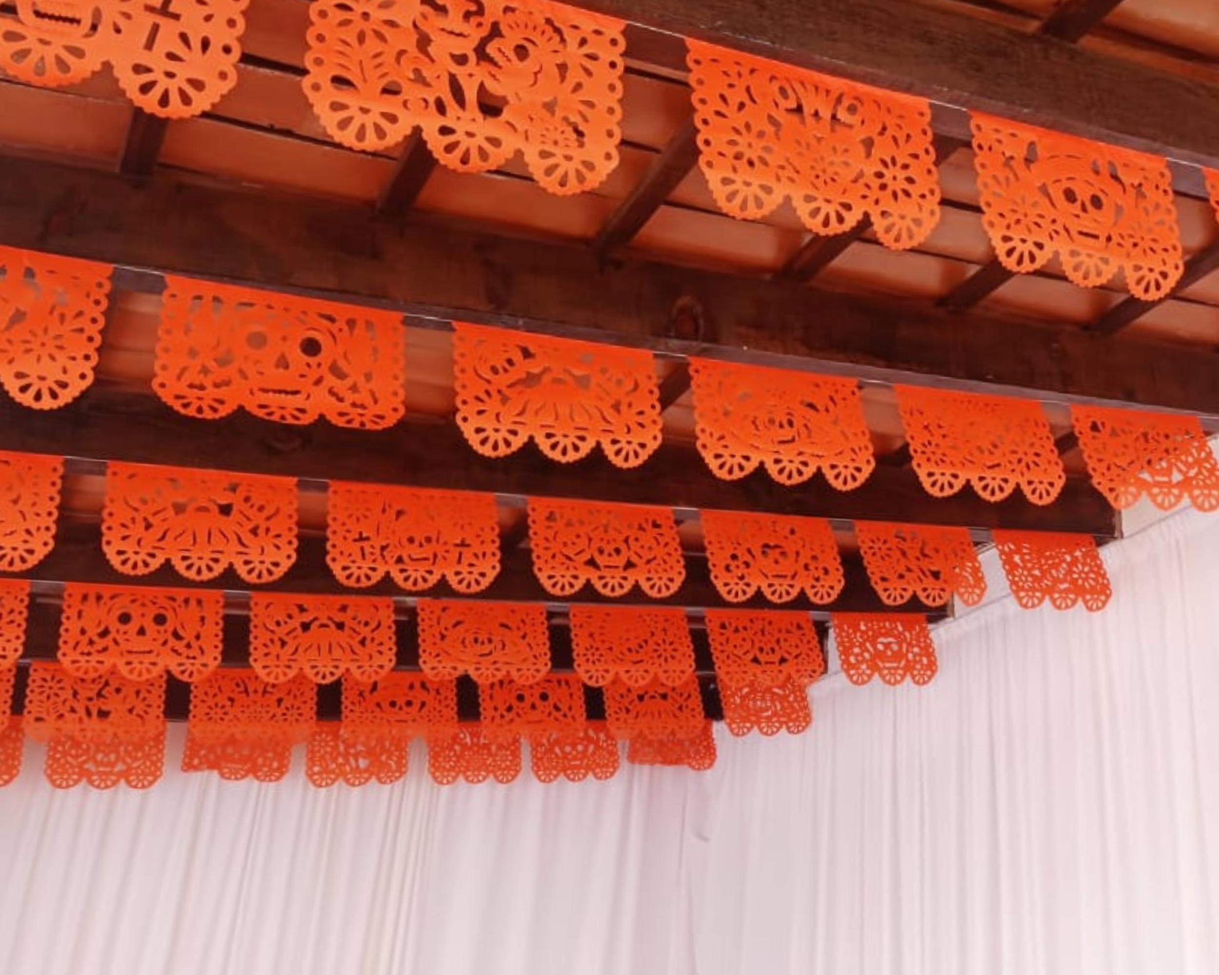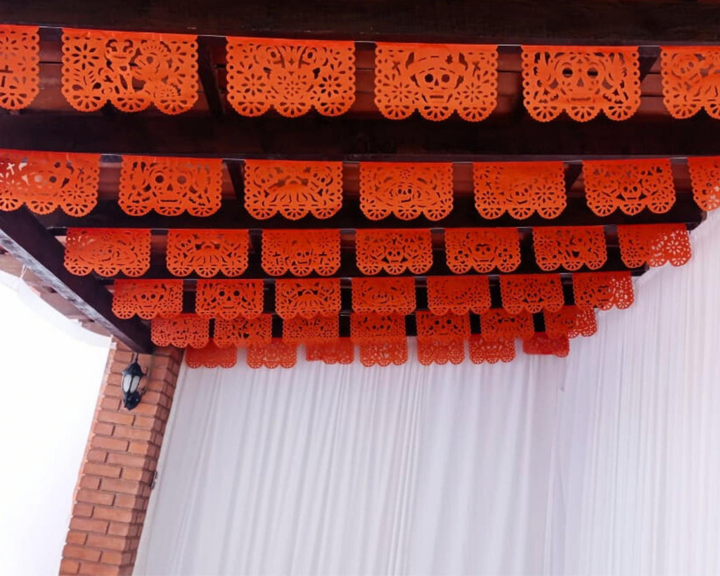 Orange Papel Picado Banners for Day of the Dead (Tissue Paper, 60ft Total)