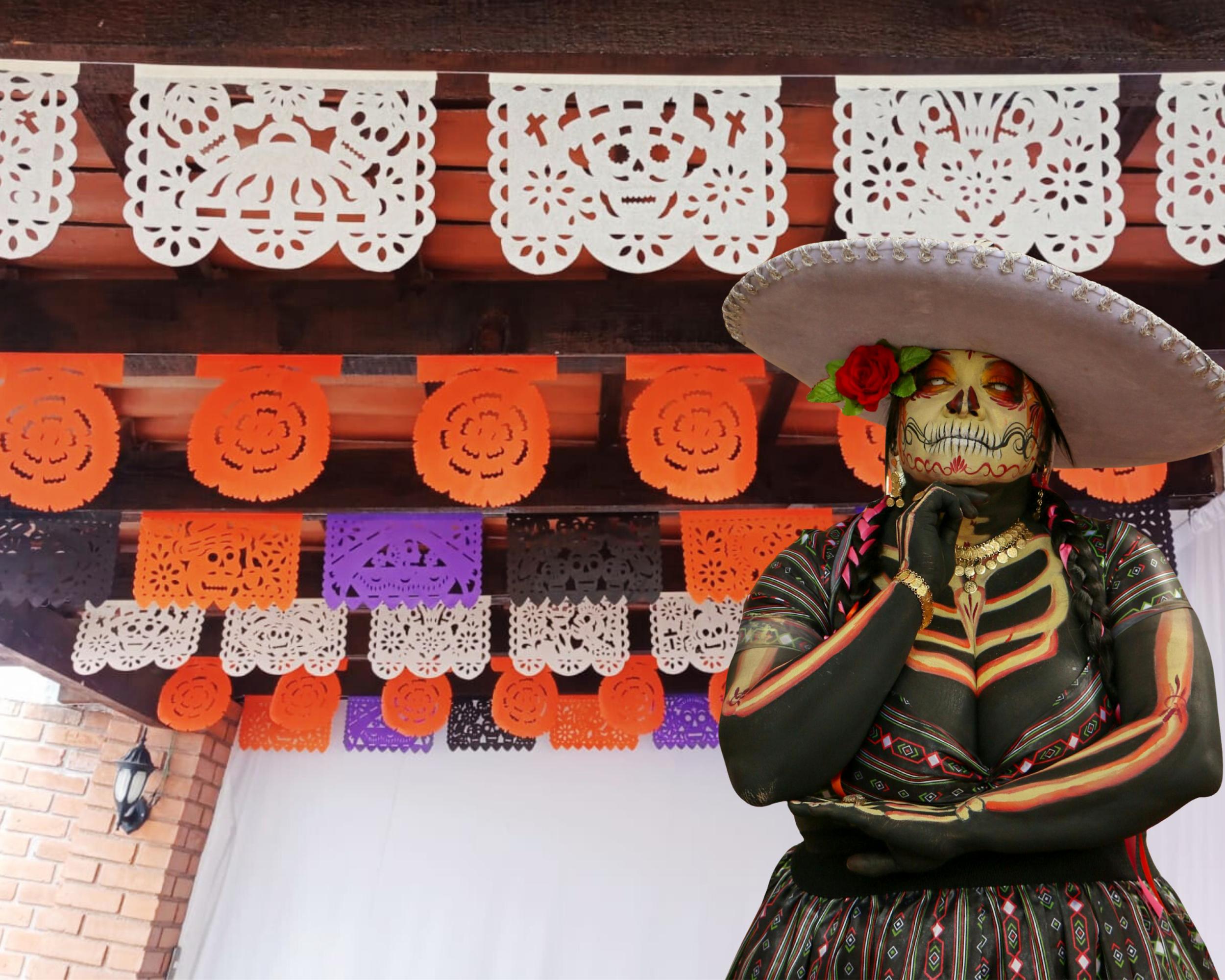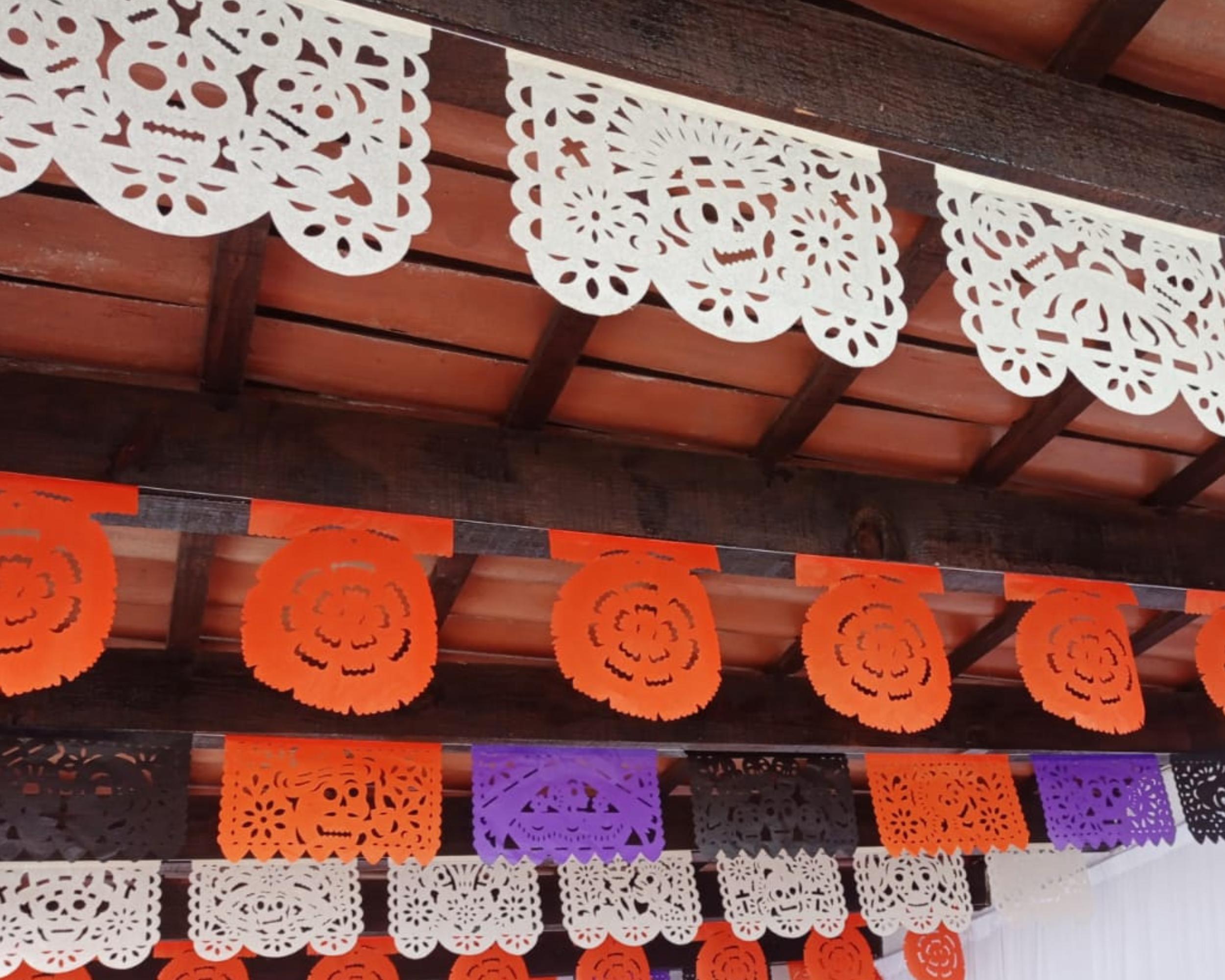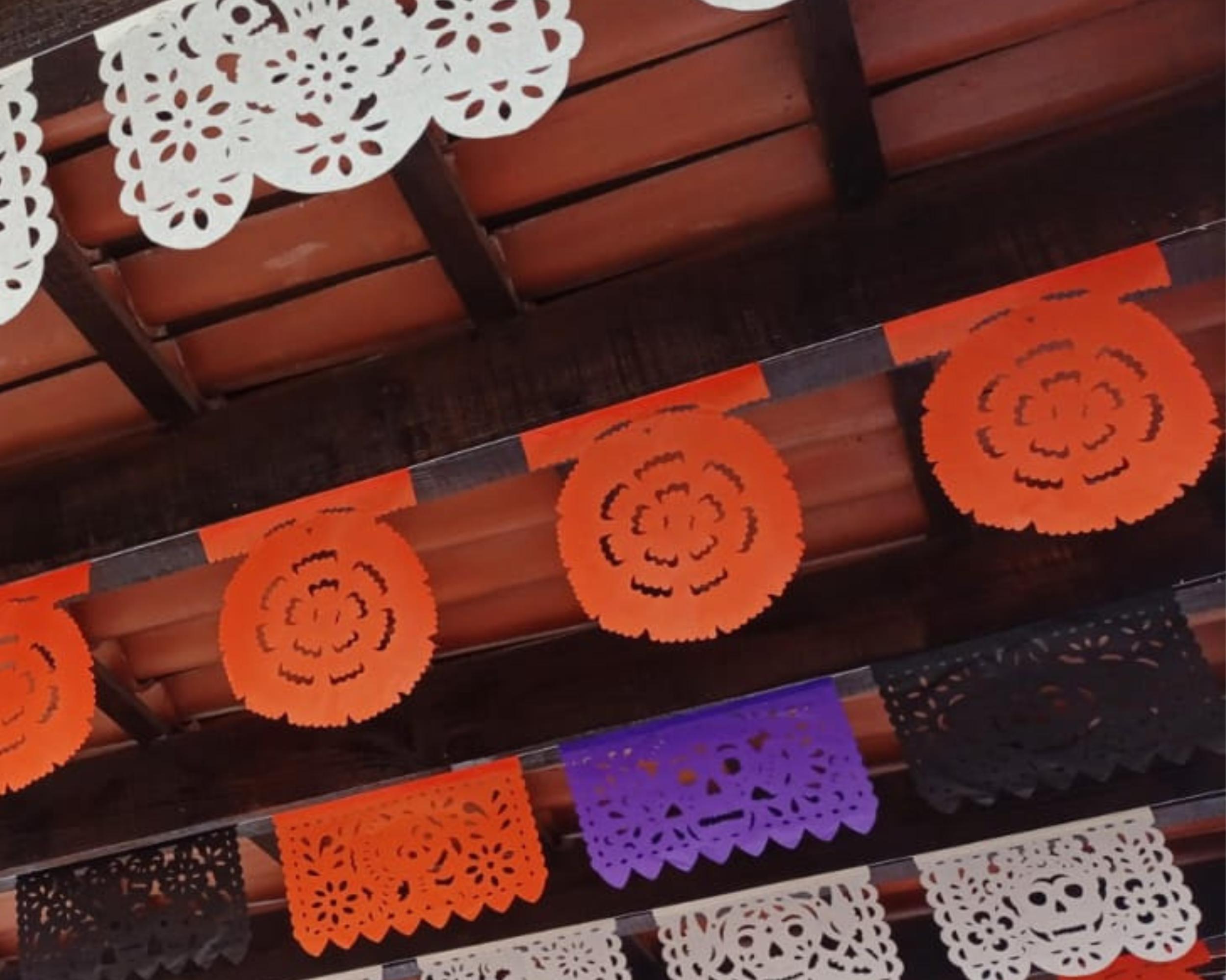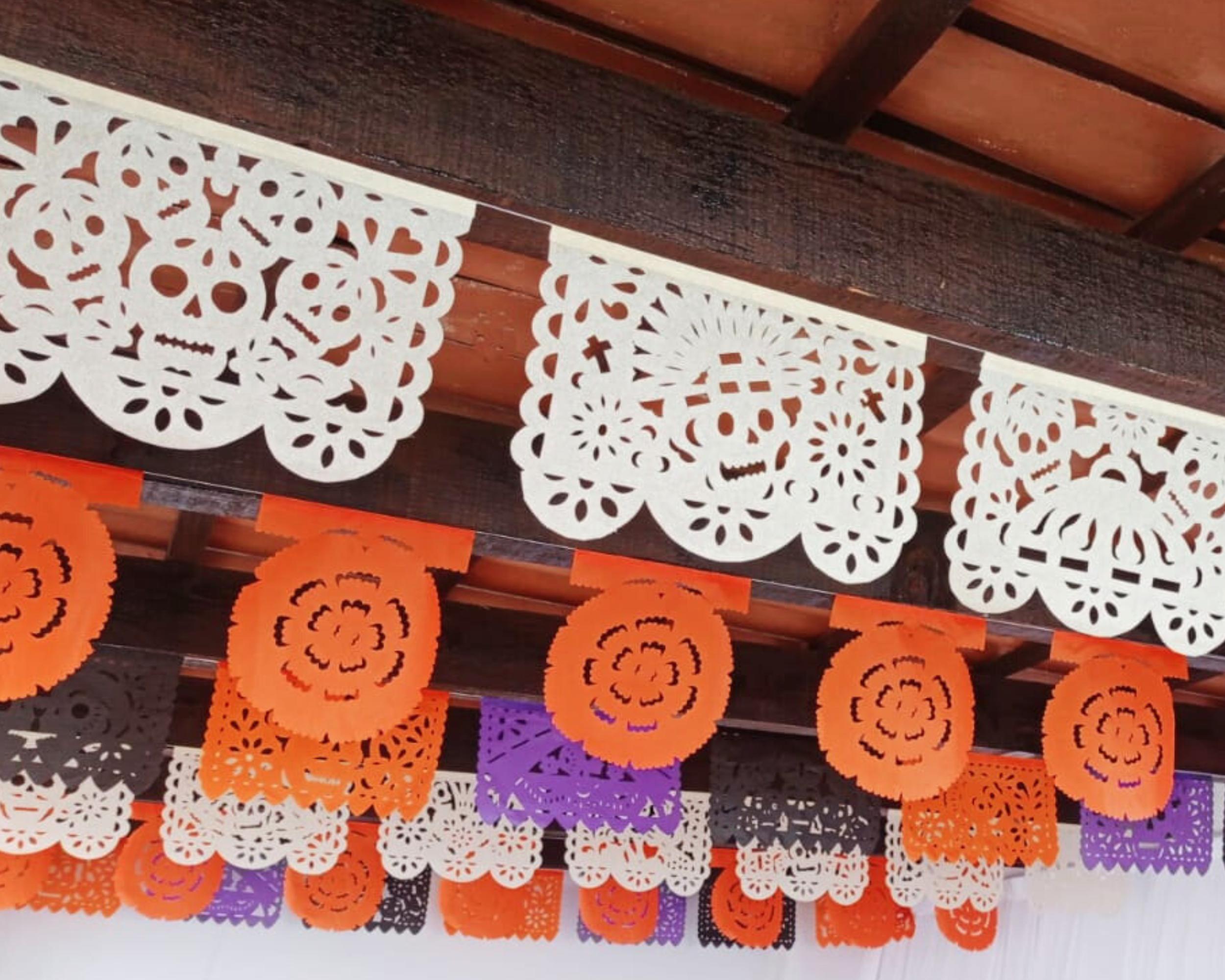 Orange Marigold Day of the Dead Papel Picado Banners - 6 Pack/Tissue paper