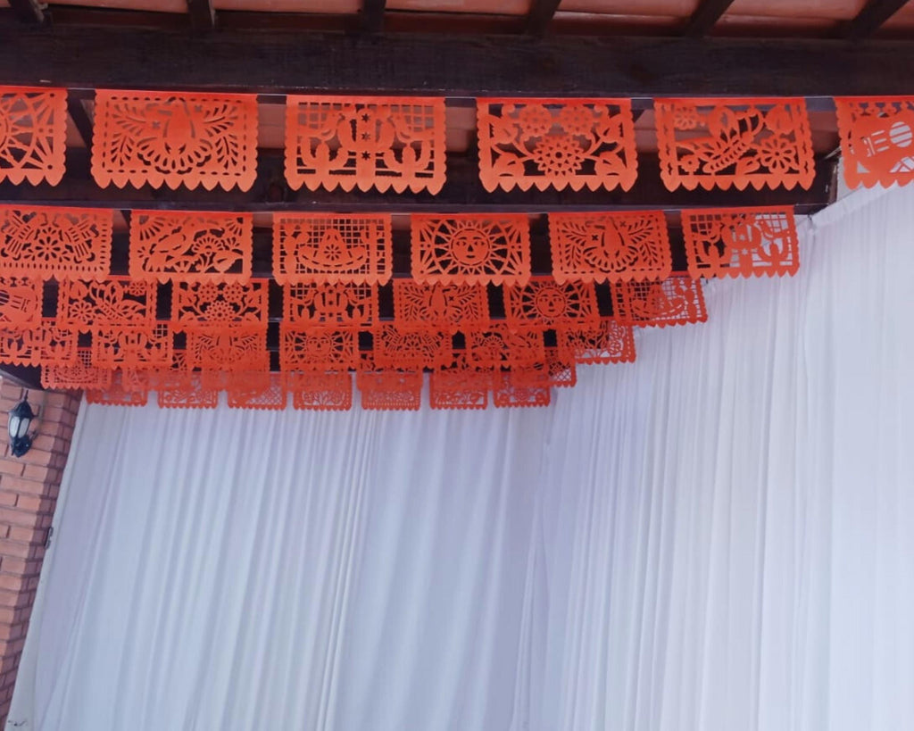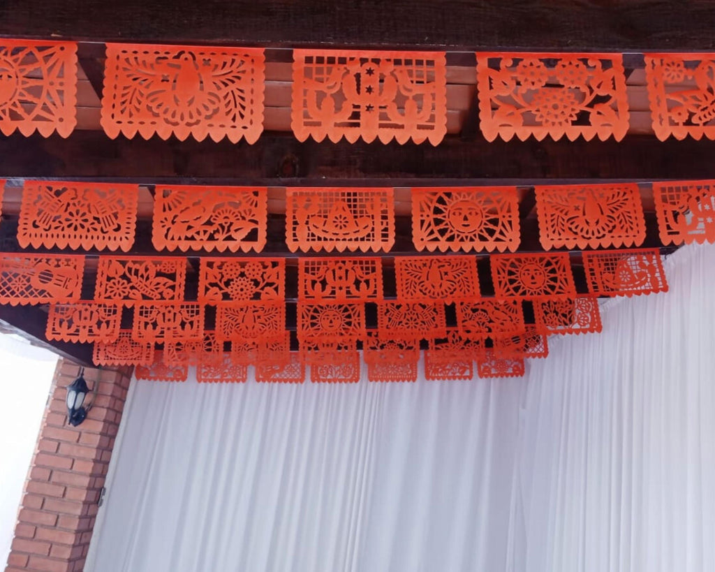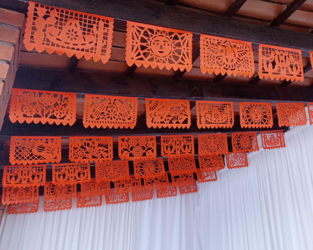 Mexican Party Decor Orange Papel Picado Banners (Tissue Paper, 60ft Total)